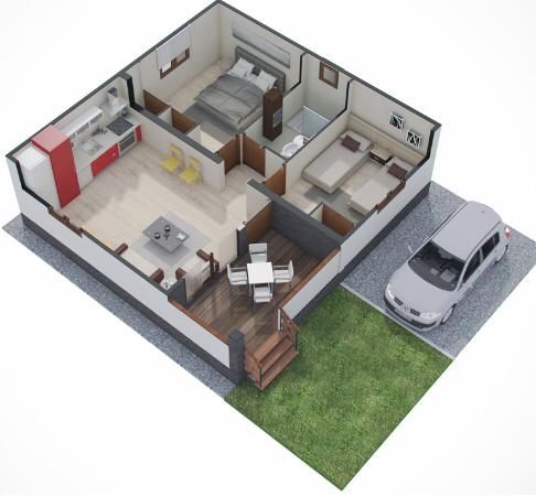 Modelo ideal para casa de vacaciones en playa o montaña, ampliacion sobre edificio ya contruido, etc.