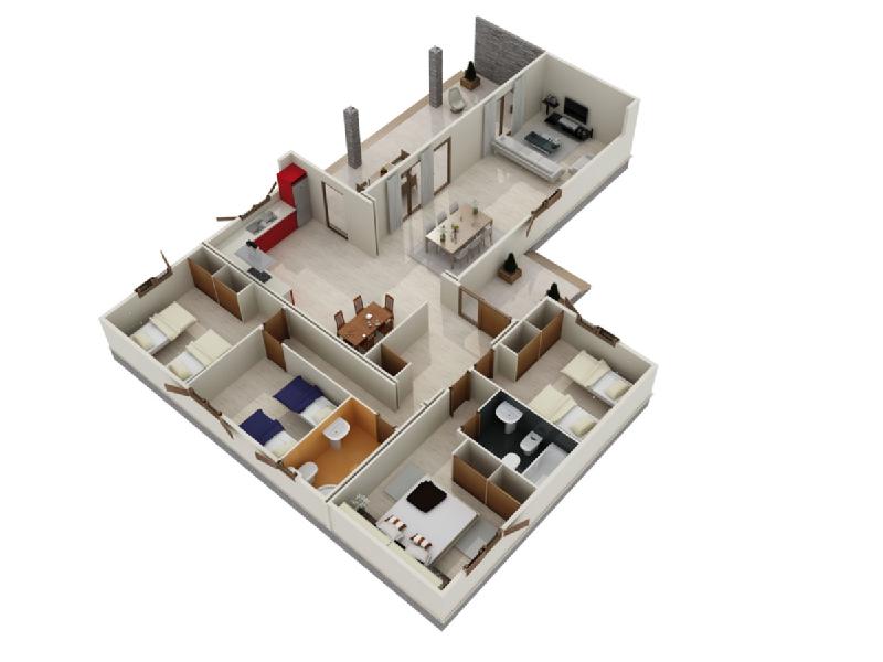 Superficie de 150 m2., 4 recamaras, 2 baños completos, sala, cocina, comedor, terraza. Altura interior, 3.12 m.